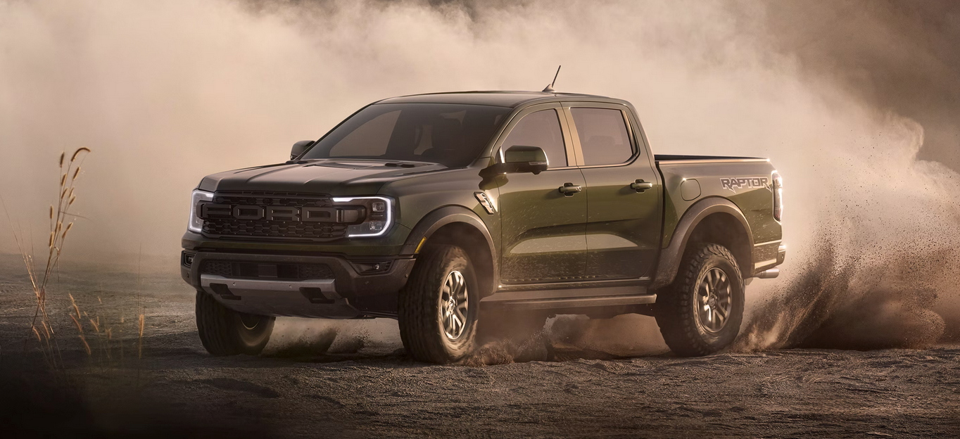 Ford Ranger Raptor®: Engineered for high-performance off-road driving with specialized suspension, aggressive styling, and advanced off-road technology.