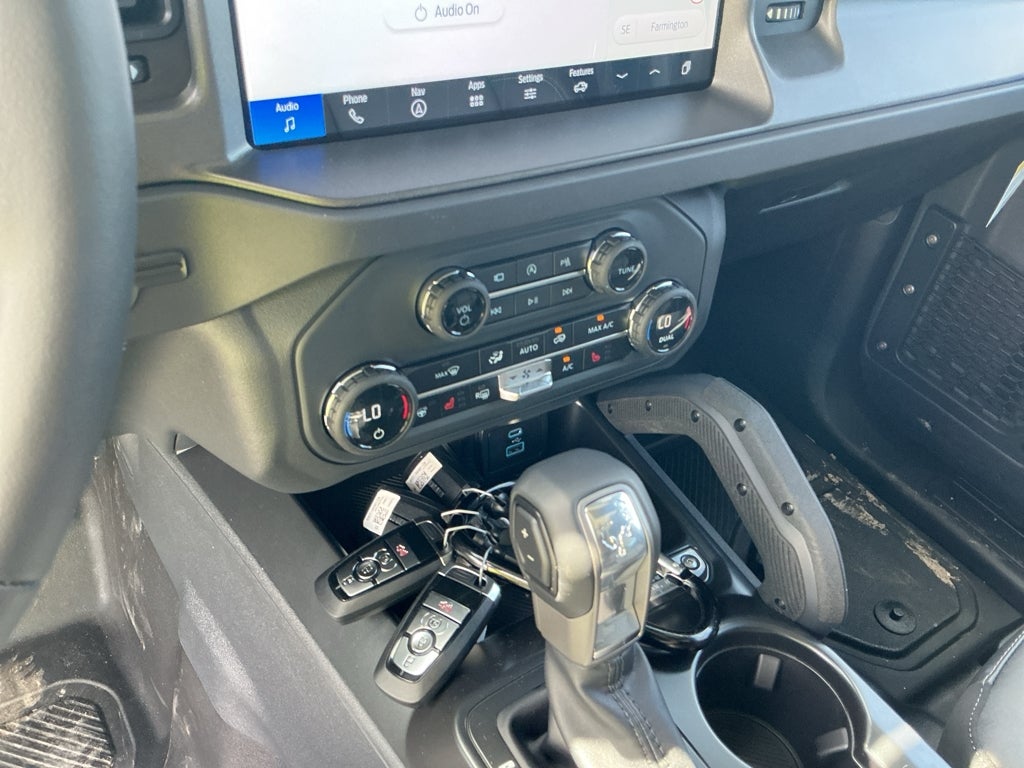 This vehicle has auto-adjust speed for safe following. The installed navigation system will keep you on the right path. This Ford Bronco warns of approaching vehicles with Cross-Traffic Alert. Never get into a cold vehicle again with the remote start feature on this unit. It is pure luxury with a heated steering wheel. This vehicle offers Android Auto for seamless smartphone integration. This Ford Bronco offers Apple CarPlay for seamless connectivity. An off-road package is installed on this unit so you are ready for your four-wheeling best. Protect the vehicle from unwanted accidents with a cutting edge backup camera system. This model features a hands-free Bluetooth® phone system. The vehicle projects refinement with a racy metallic gray exterior. This 2025 Ford Bronco has a V6, 2.7L high output engine. Maintaining a stable interior temperature in the vehicle is easy with the climate control system. This unit has four wheel drive capabilities.