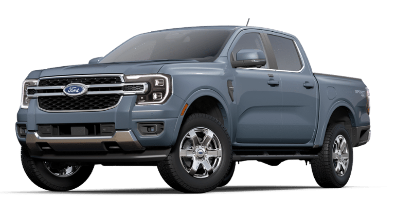 Convenience Package: 120V/400W In-Cab and In-Bed Power Outlets; Wireless Charging Pad. Equipment Group 500A Standard: Electronic 10-Speed Automatic Transmission; Leather-Trimmed Front Heated Bucket Seats; Sport Appearance Package; 2.3L EcoBoost Engine; 255/65R18 All-Terrain BSW Tires; 6. 170 lbs GVWR; B&O Sound System by Bang and Olufsen. Trailer Tow Package: Class IV Trailer Hitch Receiver. Chrome Accent Package: Chrome Rear Bumper; Body Color Painted Front Fascia; 18" Chrome-Like PVD Wheels; Chrome Center Bar and Grille Surround; Painted Body-Color Wheel Lip Molding. Azure Gray Met Tri-Coat. Black Running Boards. Electronic-Locking Rear Differential. Modular Drop-In Bedliner. Black SecuriCode Wireless Keyless Entry Keypad (DIO). Integrated Box Side Step. Tray Style Floor Liner. **Equipment listed is based on original vehicle build and subject to change. Please confirm the accuracy of the included equipment by calling the dealer prior to purchase.**