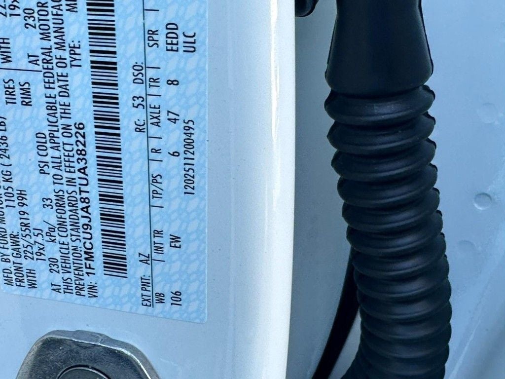 Equipment Group 601A: 2.0L EcoBoost Engine with Auto Start-Stop Technology; AM/FM Stereo with SiriusXM 360L Radio; Tire Inflator and Sealant Kit; ActiveX Trimmed Heated Front Sport Contour Bucket Seats with Mini-Perforations; 8-Speed Automatic Transmission; 19" Machined-Face Ebony-Painted Aluminum Wheels; 225/55R19 99H All Season BSW Tires; 4. 760 lbs GVWR. Star White Metallic Tri-Coat. Mini Steel Spare Wheel. **Equipment listed is based on original vehicle build and subject to change. Please confirm the accuracy of the included equipment by calling the dealer prior to purchase.**